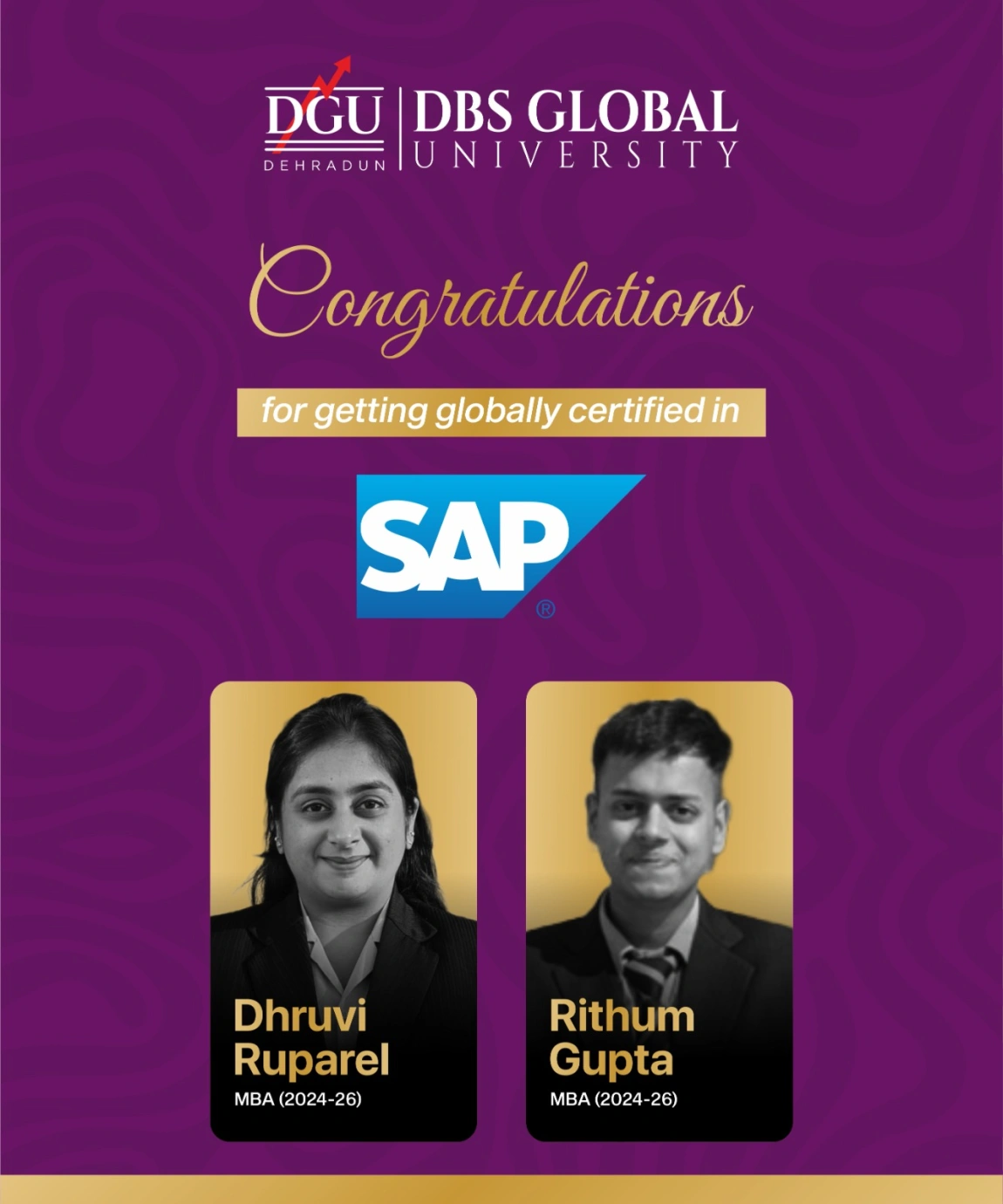 Demonstrating the strong industry alignment and quality of training, students from DGU have achieved excellent placement outcomes by successfully clearing SAP Global Certifications.