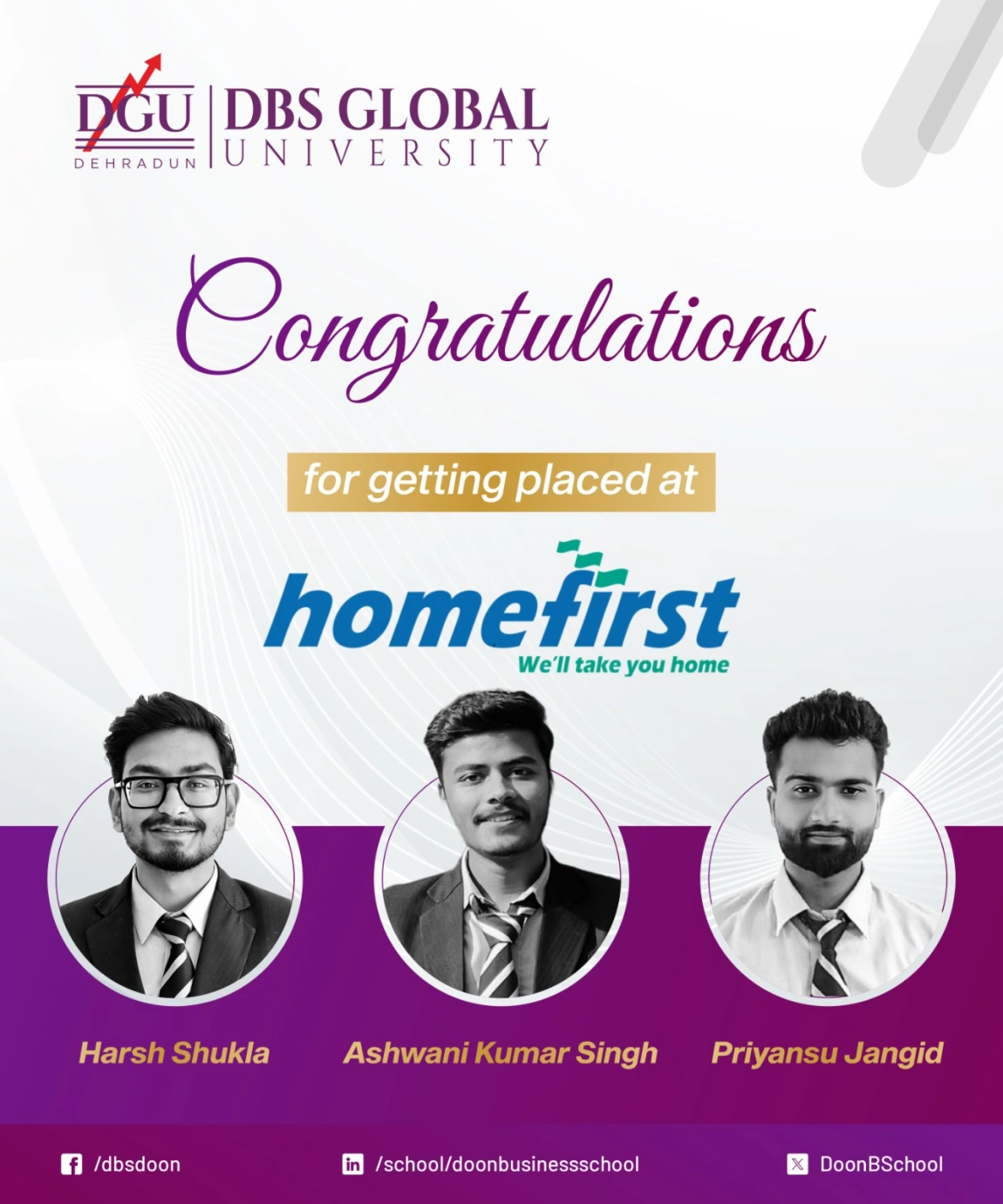 DBS Global University proudly congratulates its students on securing placements at Home First Finance Company India, a milestone that reflects their hard work, preparedness, and professional confidence. This achievement highlights the university’s continued focus on building strong industry connections and preparing students to meet real workplace expectations from day one.