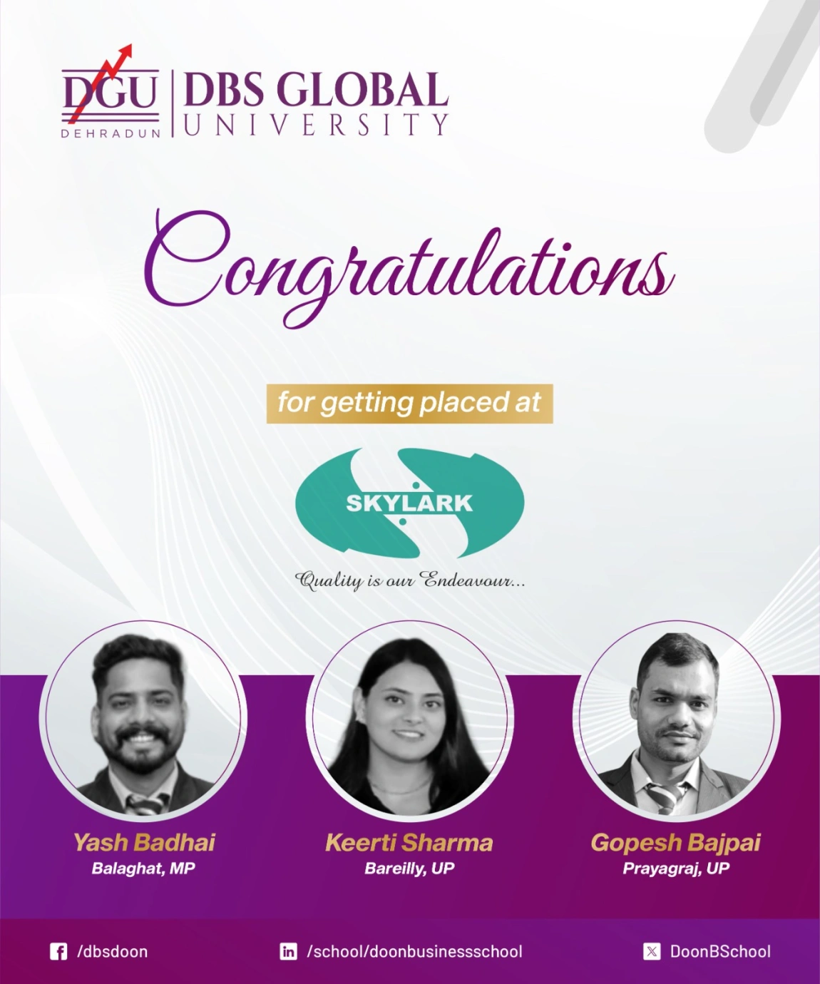 Students from DBS Global University have secured placements at Skylark, marking another milestone in the university’s strong record of industry engagements. These placements reflect the students’ dedication, practical skills, and the professional experience they have gained during their time at DBS. Congratulations to all the students for achieving this success.